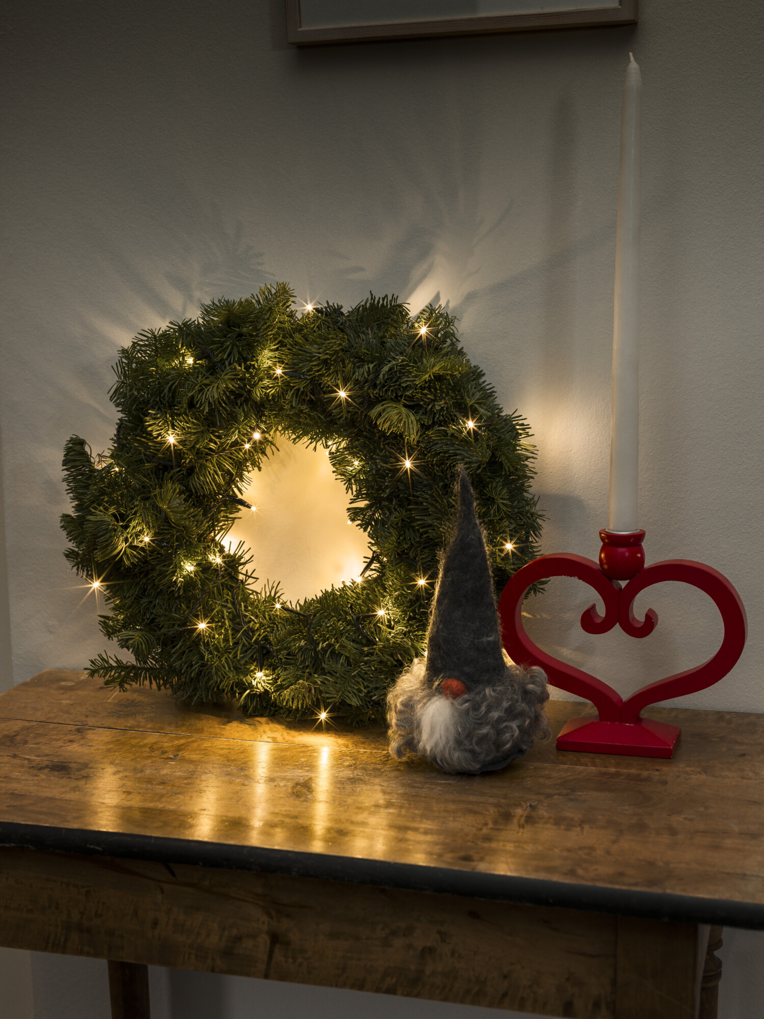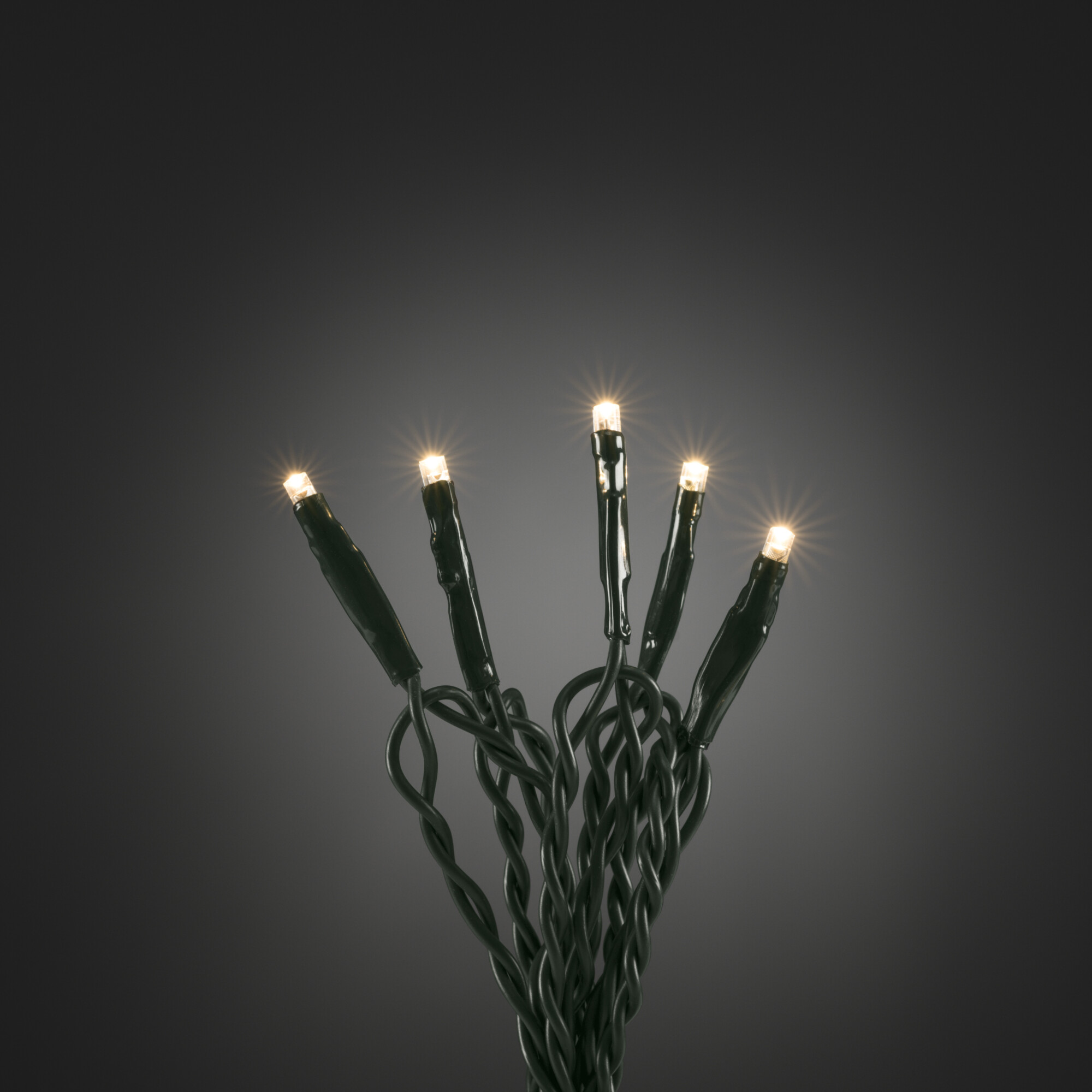 50 warm white light LED string set on green flex.