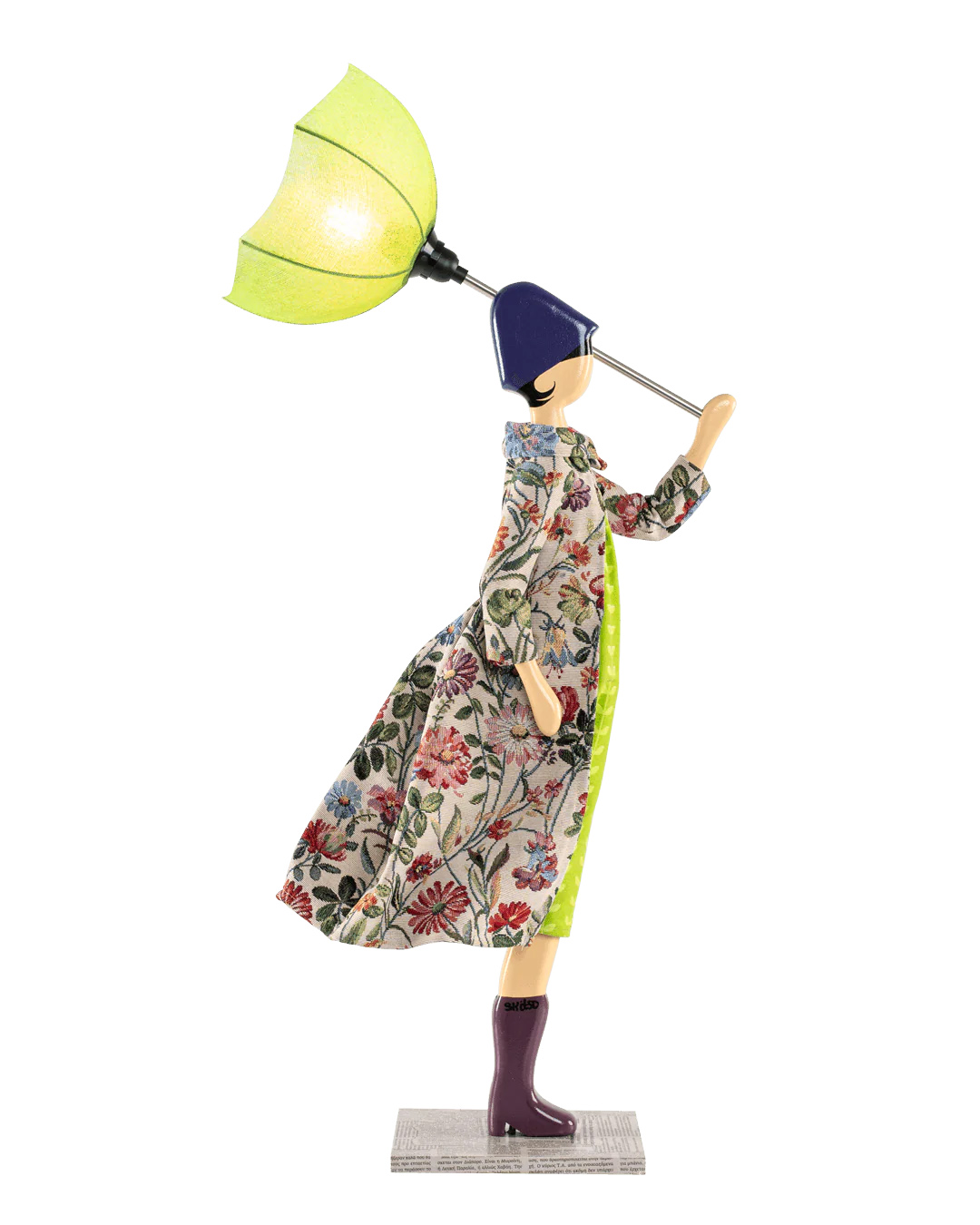 This Allora Lady Lamp is lovingly handmade in Greece and will add a unique style to any room. Each Charming Outfit is individually handmade, with the Body and base being formed from sustainable Wood. The umbrella, which is actually the light, has been turned inside out from the wind which is further amplified by her skirt. This is a truly beautiful piece which is guaranteed to bring a unique flair to any room.