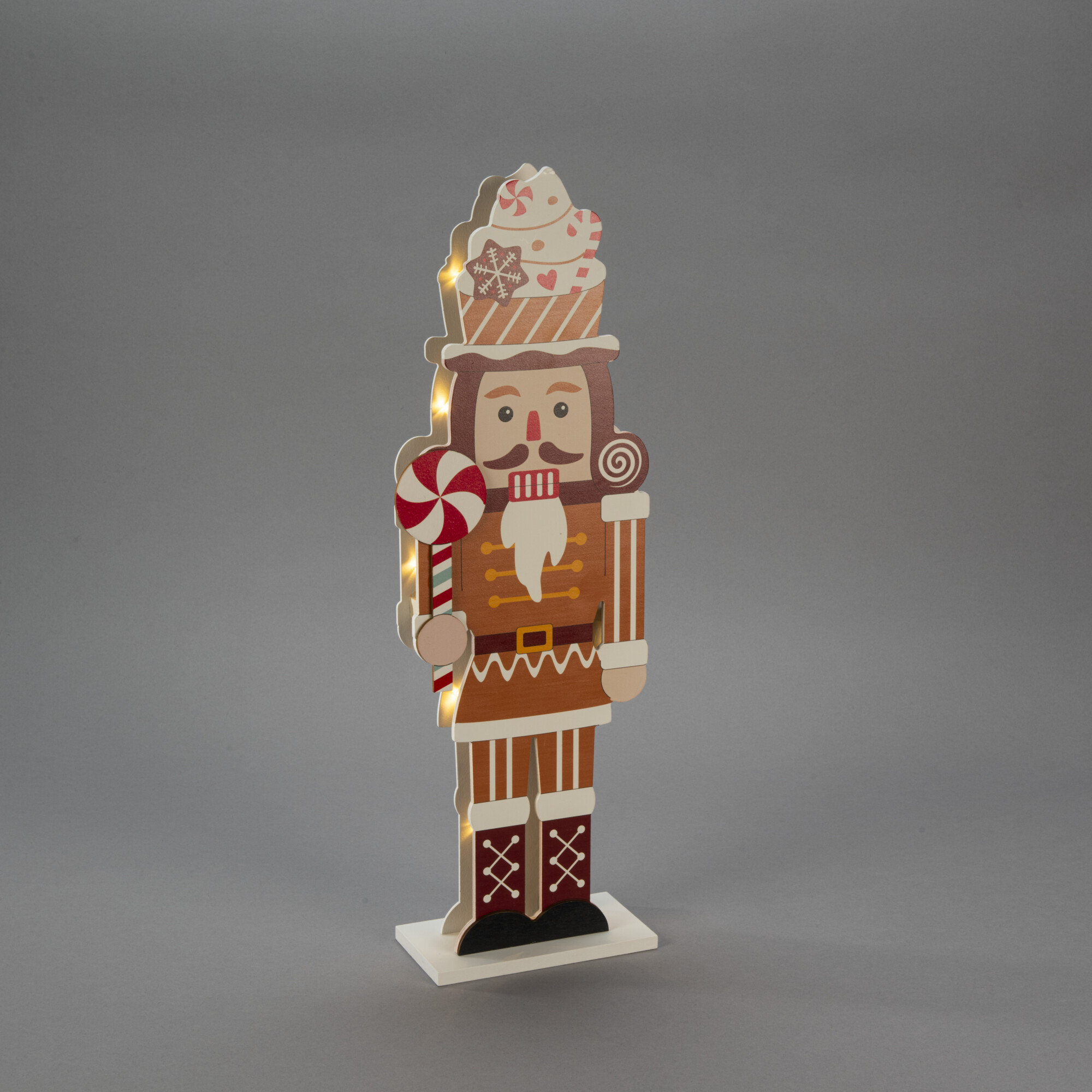 Brown Nutcracker with warm white LED lights.