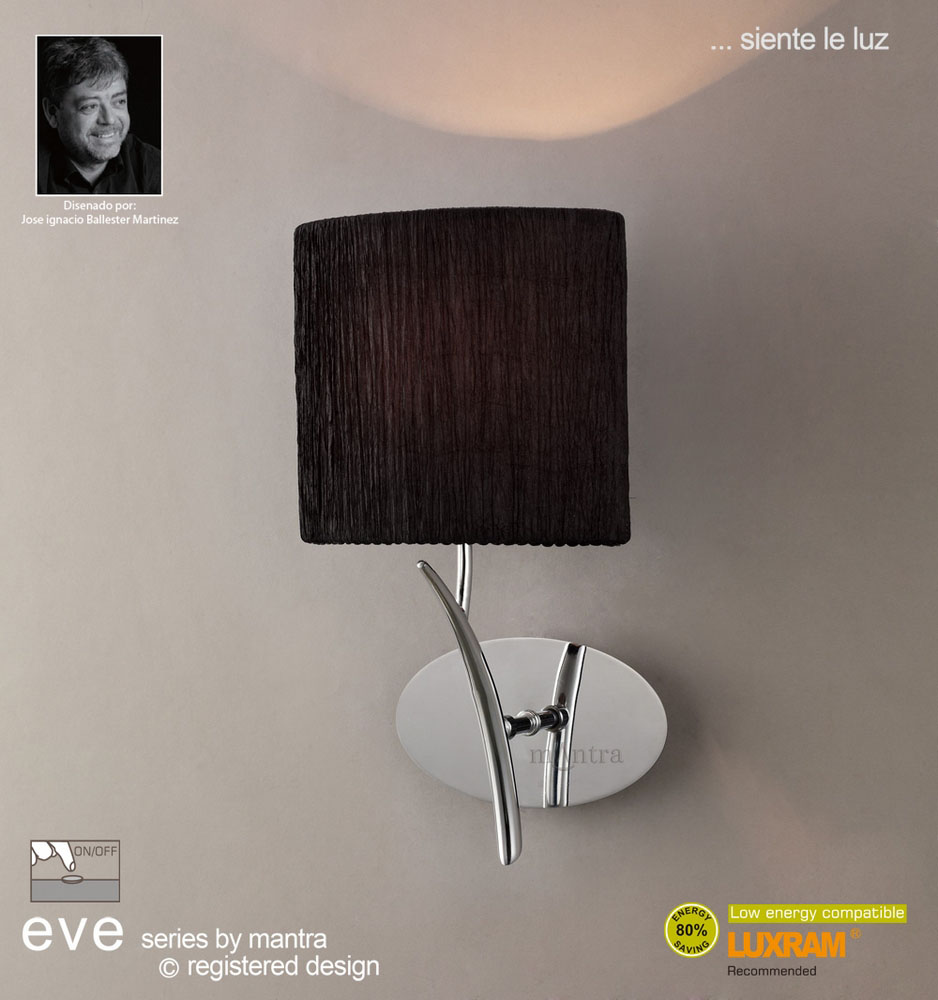 Eve Wall 1 Light Polished Chrome With Black Shade Switched
