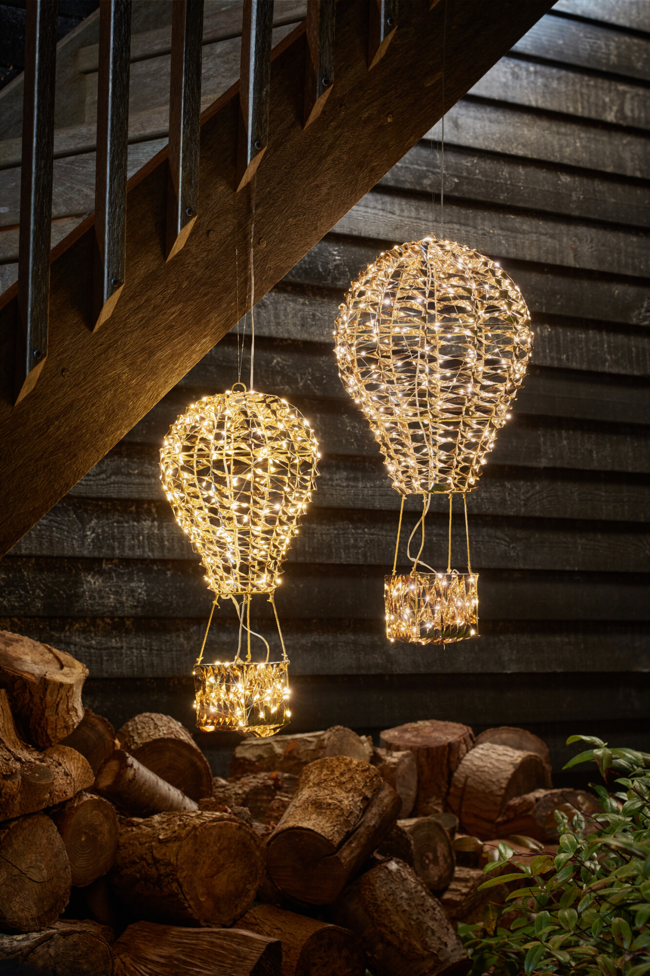 Illuminate your home and garden with a festive gold twist hot air balloon. Warm white LEDs.