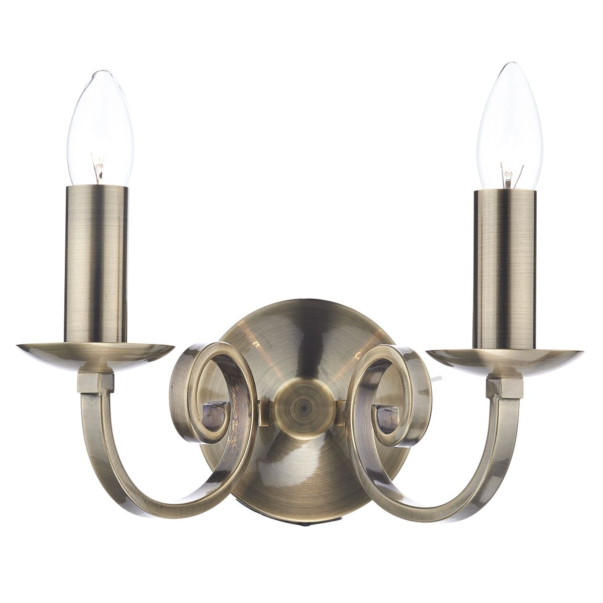 A classic double wall light, traditional in design and finished in an antique brass. Accesorise with candle shades or leave bulbs exposed for the perfect lighting in your home.