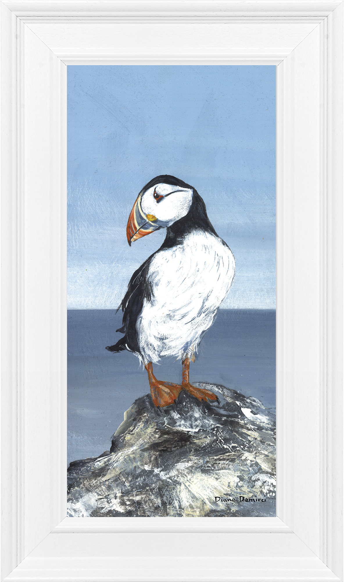 A Puffin on a rock, preparing to fly. Hand finished using textured gel – no glass.