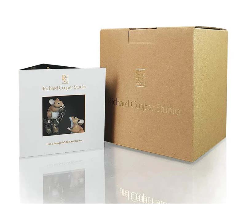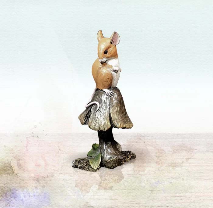 After a delectable woodland feast, it's time for a quick groom on the perfect perch, a plump toadstool! This well-fed mouse by Michael Simpson, is cast in resin bronze and carefully hand painted using fine artist's oils. The toadstool is subtly highlighted with green and gold to bring the fine sculpted details to the fore.
