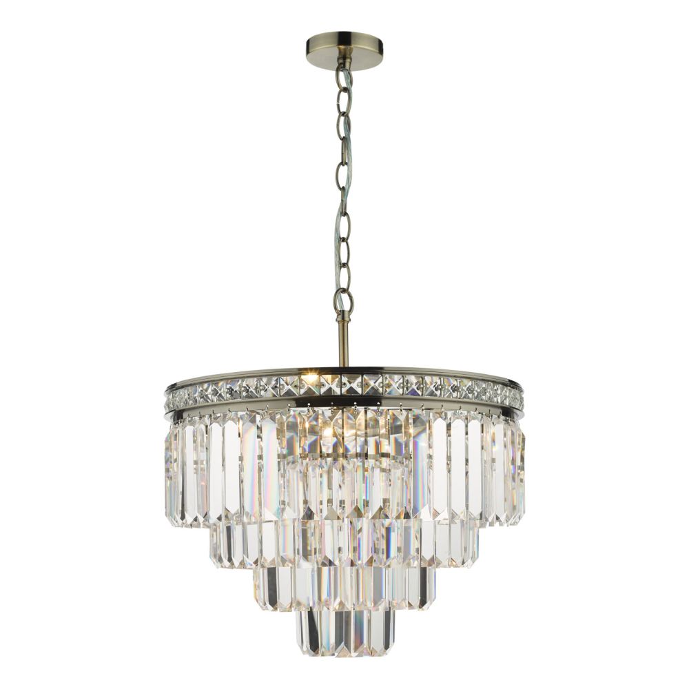 Stunning 4 tier crystal pendant available in polished nickel or antique brass finish.